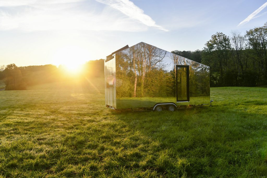 Grâce à son revêtement en aluminium, la Tiny House se fond dans son environnement et devient littéralement invisible. Posez la dans votre jardin et elle disparaîtra de votre champ de vision. Posez la en pleine nature et vous profiterez d’un logement confortable dans un cadre idyllique.