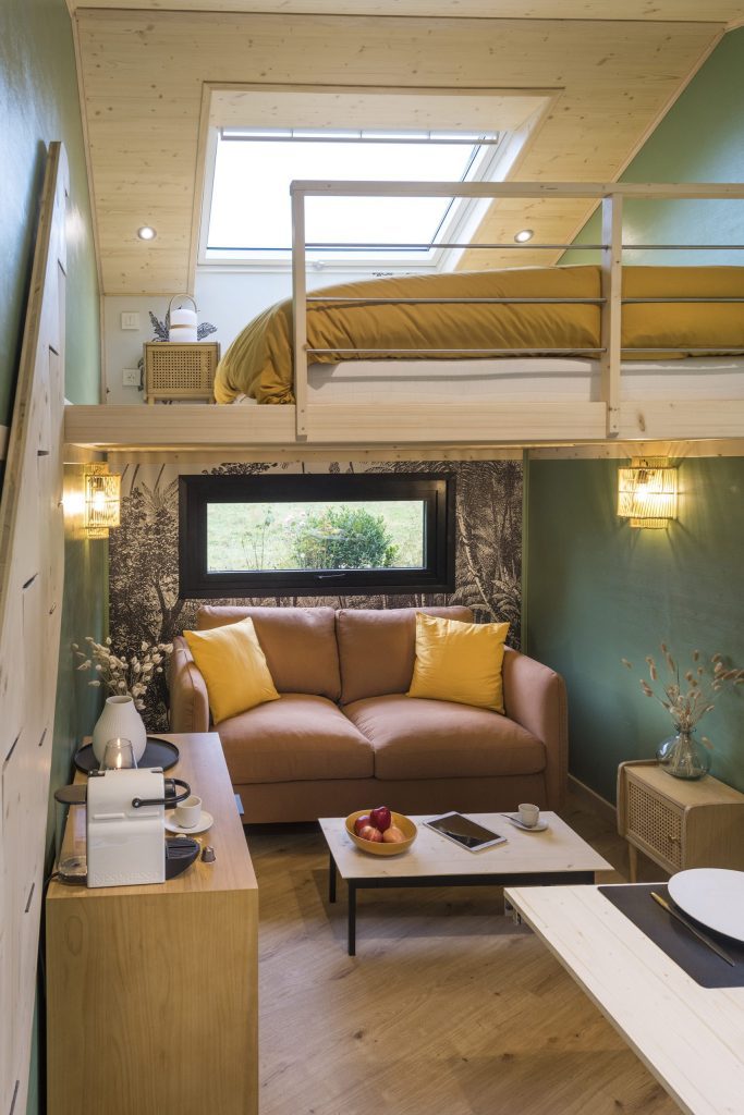 L’intérieur de la Tiny House est agencée avec goût et astuce. Il comprend :