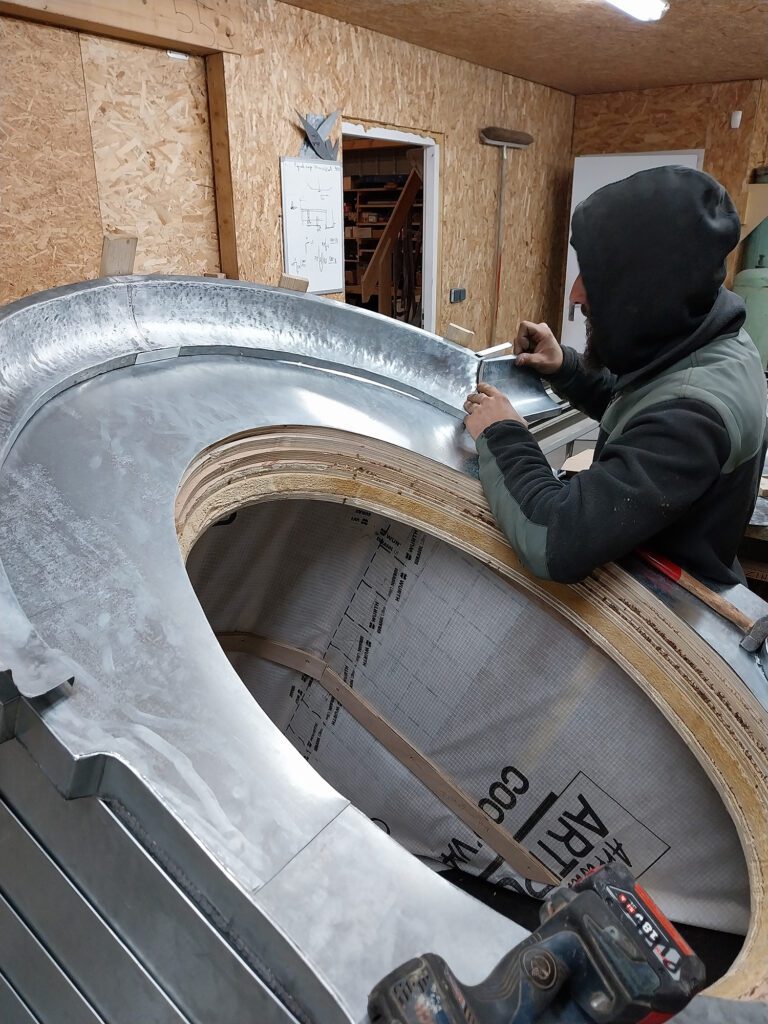 Zinguerie artisanale et couverture en petites tuiles